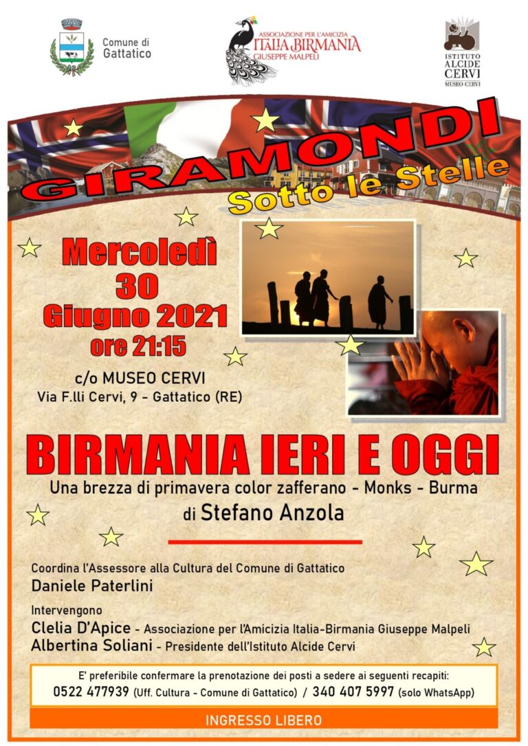 L’evento fa parte della rassegna Giramondi sotto le stelle: l’iniziativa è organizzata in collaborazione con l’Associazione per Amicizia Italia-Birmania Giuseppe Malpeli.