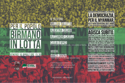 Lanciata la raccolta fondi “Una finestra per guardare il futuro” per mettere i vetri in una scuola elementare della periferia di Rangoon. E’ in vendita il video “La democrazia, il filo che unisce”, realizzato dall’Associazione sulla giornata parmigiana di Aung San Suu Kyi, i cui ricavati serviranno a finanziare il progetto della scuola. Inoltre sono state aperte le iscrizioni all’Associazione.