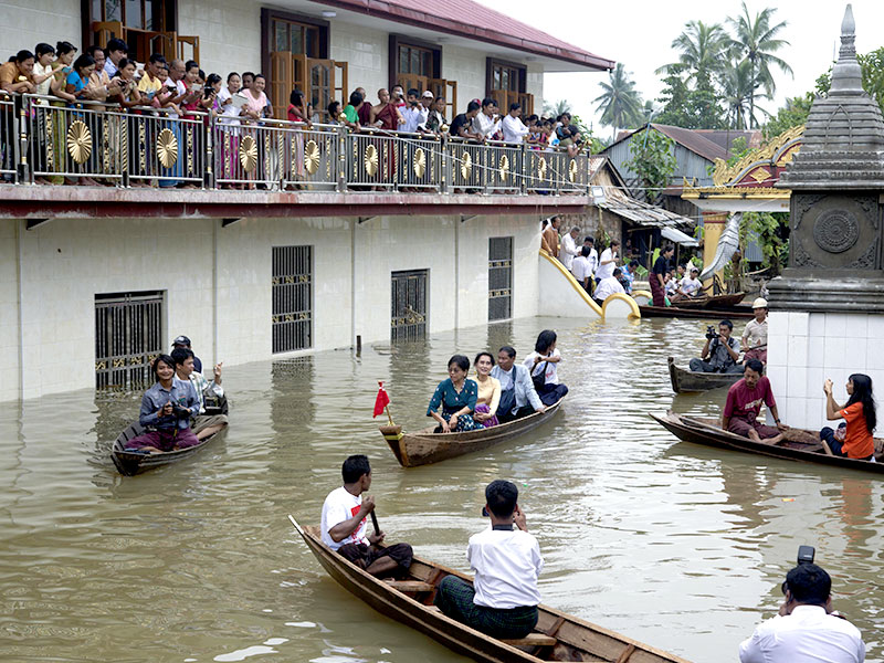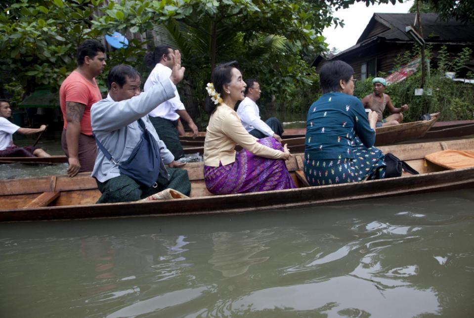 Oggi Aung San Suu Kyi si è recata in visita in una delle regioni più colpite dalle alluvioni di questi giorni.  E’ arrivata al villaggio di Bago a circa 70 km da Yangon a bordo di una tipica imbarcazione birmana. Ha visitato alcuni dei luoghi in cui hanno trovato riparo le vittime delle inondazioni distribuendo acqua potabile e generi di conforto.