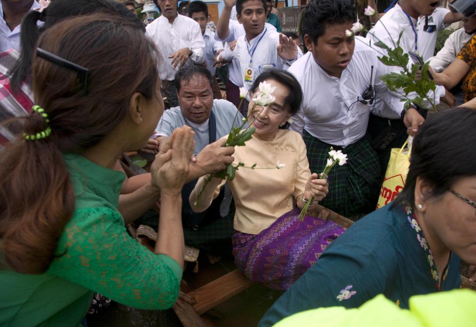 Aung San Suu Kyi visita le aree alluvionate.